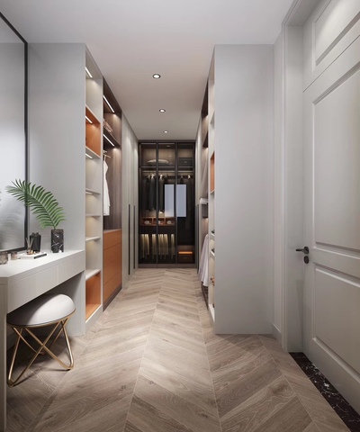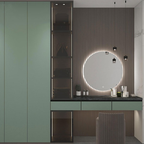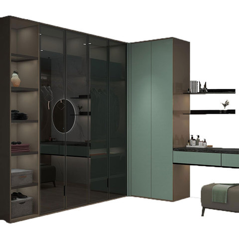 Dormitorio principal Puerta de cristal grande Armario de madera Armario con tocador