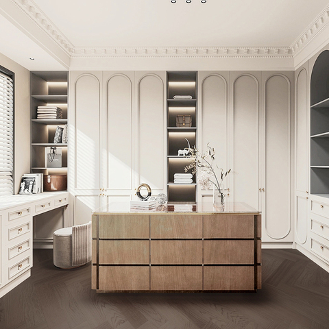 Estilo francés Diseño de altura completa Walk in Closet Armario con Isla de madera