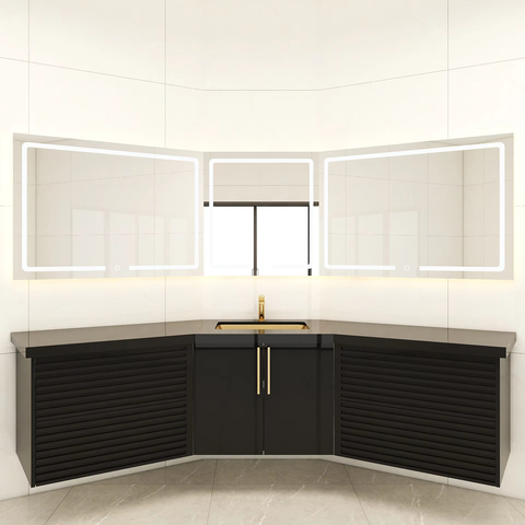 Juego de gabinetes de tocador de baño minimalistas modernos con marco de aluminio y particiones de vidrio