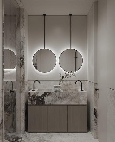 Moderno lujo granja hotel estilo personalizado respetuoso con el medio ambiente LED iluminado espejo montado en la pared armarios de lavandería Almacenamiento de cerámica para