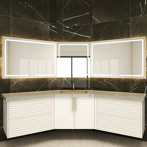 Mueble de tocador de baño modular minimalista moderno con espejos iluminados con LED y acabado lacado blanco